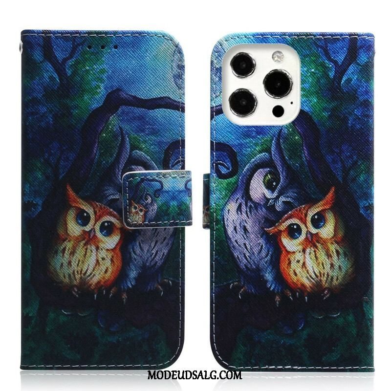 Flip Cover iPhone 13 Pro Max Maleri Af Ugler